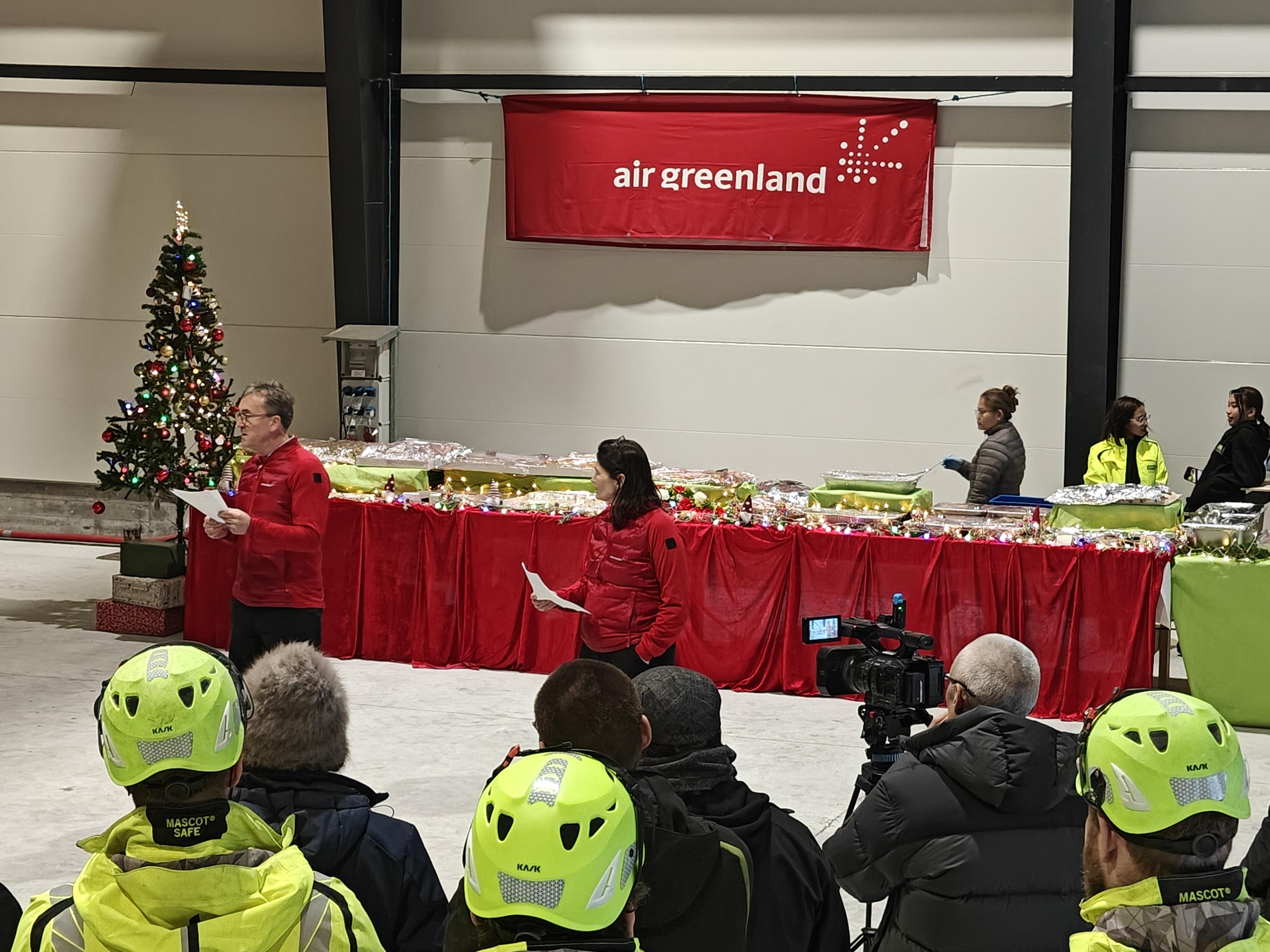 – We are used to working closely together, since we operate within the same field here on the ground, he said, before inviting the two Air Greenland directors forward to receive a gift.